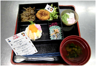 昼食 普段使い慣れたご自身の茶碗や湯のみ、箸などをご持参いただいてお召し上がりになることも可能です。職員も一緒にテーブルについて、家庭的な楽しい食卓の雰囲気を作り出しています。 |