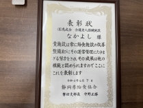 介護老人保健施設なかよし、給食調理有限会社マイスが令和4年度優良給食施設として静岡県給食協会より表彰を受けました。今後も、安心・安全のおいしい給食を入所者さんや利用者さんにお届けできるよう努力してまいります。
